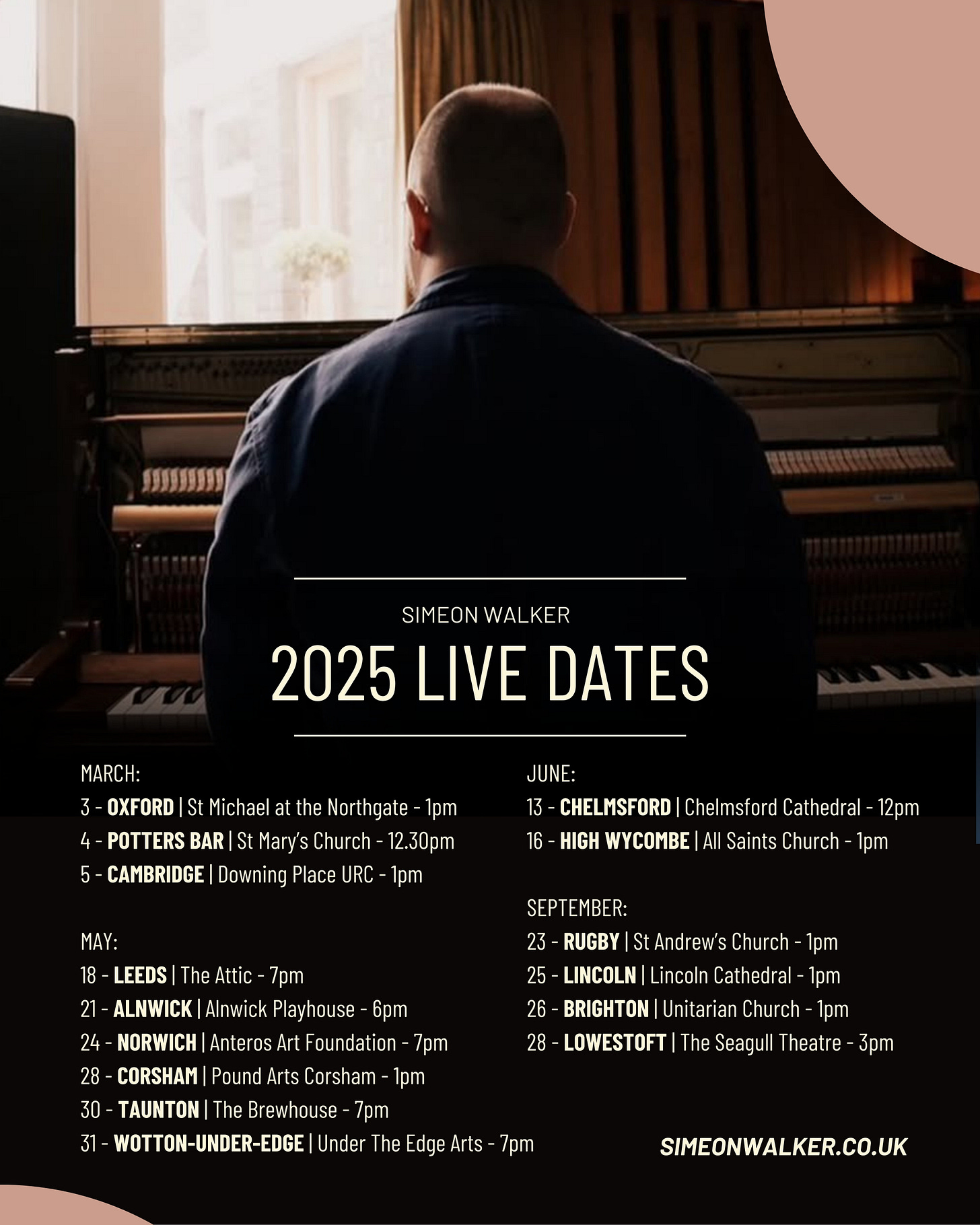 If I’m coming near to you, I really hope you’ll be able to come and say hello. Some of these are ticketed shows, whilst others are free entry/donation-based lunchtime concerts. All of the information and ticket details are on my website…